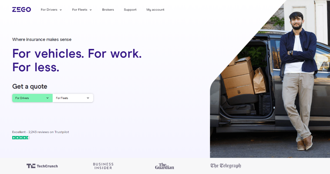 Zego的主要服务对象既包括个体从业者(To C端),也包括拥有整个货运车队的小微企业(To B端)。针对个体从业者,Zego的产品可以按照车辆类型进一步划分为:轿车保险(Car Insurance)、货车保险(Courier Van Insurance)、电动车保险(Scooter Insurance)和网约车保险(Private Hire Insurance)。针对小微企业,Zego的产品则主要包括车队保险(Fleet Insurance)和微型交通保险(Micromobility Insurance)。