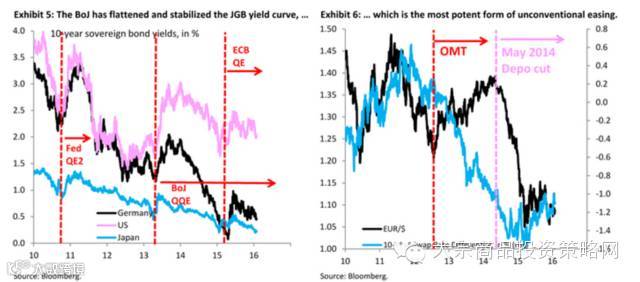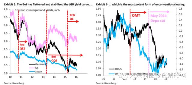 量化宽松项目旨在提振经济增长。日本央行的QQE项目已经令日本国债收益率曲线大幅走平并变得稳定。这将令美元/日元因风险偏好情绪提振而走升。欧元/美元并没有从资产购买项目中受益,其波动性一直很大。