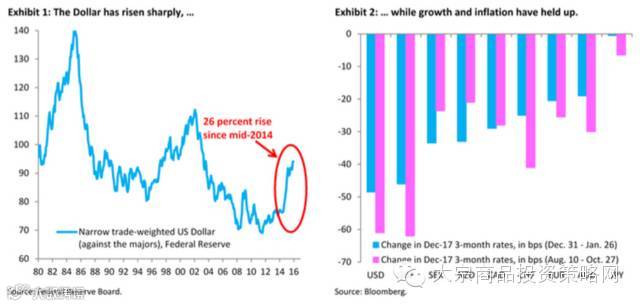 所有短期忧虑背后潜藏着的事实被忽视了。虽然美元对主要货币过去两年升值了26%,但美国经济整体在增长。毫无疑问,美国净出口和通胀已经受到美元升值带来的影响。但是,美国经济弹性表明,经济增长和通胀方面的潜在动力要好于市场给出的定价。这可能刺激美元汇率进一步上涨。