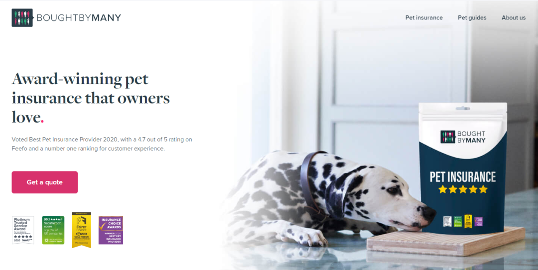 Bought By Many坚持以客户为中心的经营理念,在消费者中广受好评,因而屡获殊荣:2018年被《连线》杂志列为欧洲最热门的初创企业之一;2019年在Moneywise客户服务奖中被评为最受信任的宠物保险提供商;2020年在保险选择奖(Insurance Choice Awards)中被评为最佳宠物保险提供商,在《星期日泰晤士报》Tech Track 100 中排名第30。