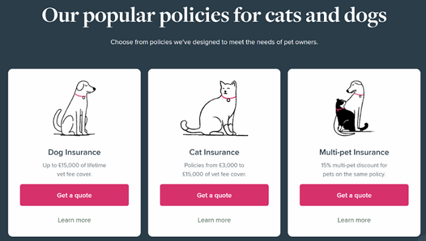在保单条款的设计上,Bought By Many收集了四万余条评论、听取了数千名宠物主人的意见,解决了市场上现有保单的问题。Bought By Many还开创性地提供了能够承保宠物已患疾病的保险条款,帮助了无数曾经无法获得帮助的宠物,使其在竞争对手中脱颖而出。Bought By Many的保单主要分为三类:完整终身保险每年提供最高 15,000 英镑的兽医费用保障,常规保险7,000英镑,这两者都承保两年前的疾病,而已患疾病版还支持两年内所患疾病的理赔,兽医费用保障每年7000英镑。Bought By Many的大部分保单都不限宠物年龄,可按月支付,且索赔成功率高——2020年,公司支付了96%以上的索赔。此外,Bought By Many还通过引入在线索赔、24/7全天候免费与兽医视频通话等便利服务,进一步吸引消费者。