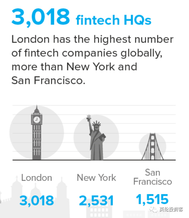 在公司数量上,截至目前,伦敦共拥有3018家金融科技公司,比全球任何其他城市的金融科技公司都多(纽约2531家;旧金山1515家)。