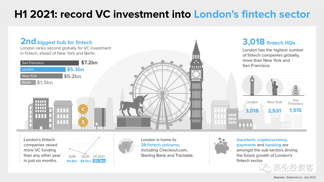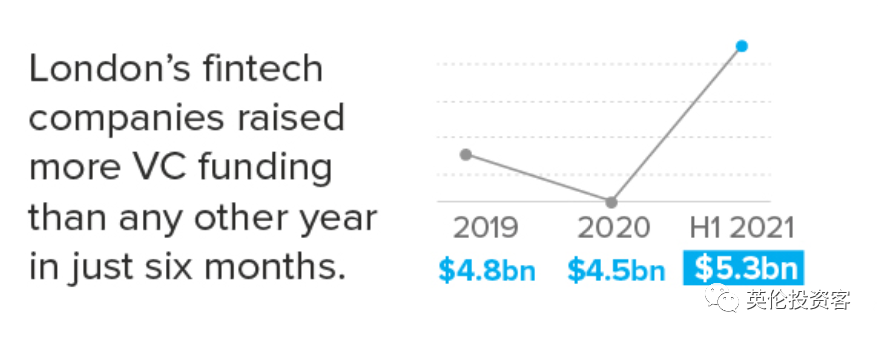 伦敦政府下属的伦敦发展促进署则发布最新联合报告表示,在2021年上半年,伦敦金融科技领域融得的风险投资(VC)额为53亿美元,创历史新高。