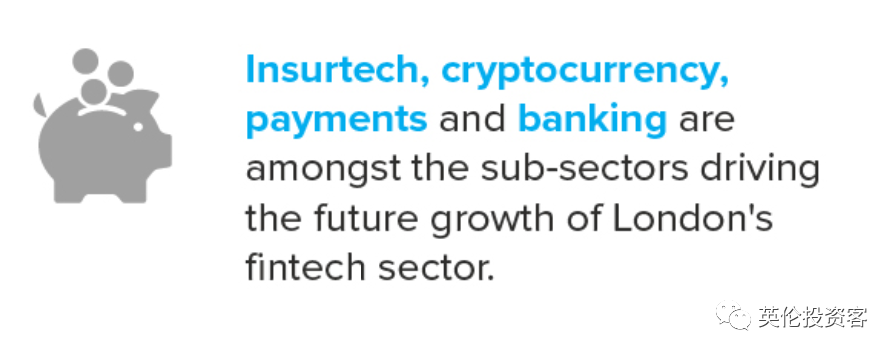 研究进一步分析表明,伦敦在一些增长最快的金融科技子行业中有着巨大优势,其中增长势头最快的是保险科技(insurtech)、加密货币(cryptocurrency)、支付(payments)和银行(banking)等行业。