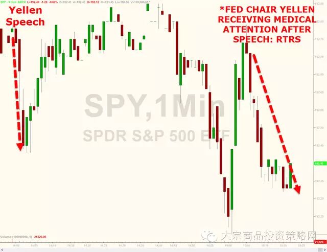 据Zerohedge,那两分钟以及耶伦接受护理的消息传出后,市场是这样反映的: