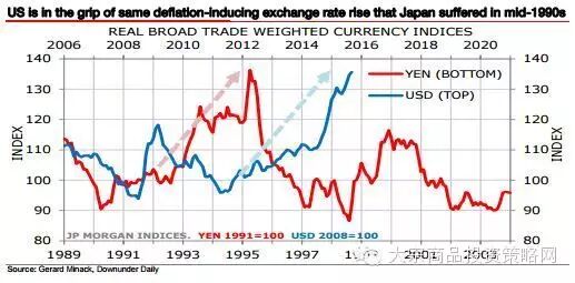 Albert Edwards还指出,日本此前出现的“失去的十年”就是美国近期正在经历的先例。然而,美国的情况会比日本上世纪90年代糟糕的多。尽管也有本国自身的问题,但日本仍可以在“失去的十年”中依赖出口。而美国将无法这么做。