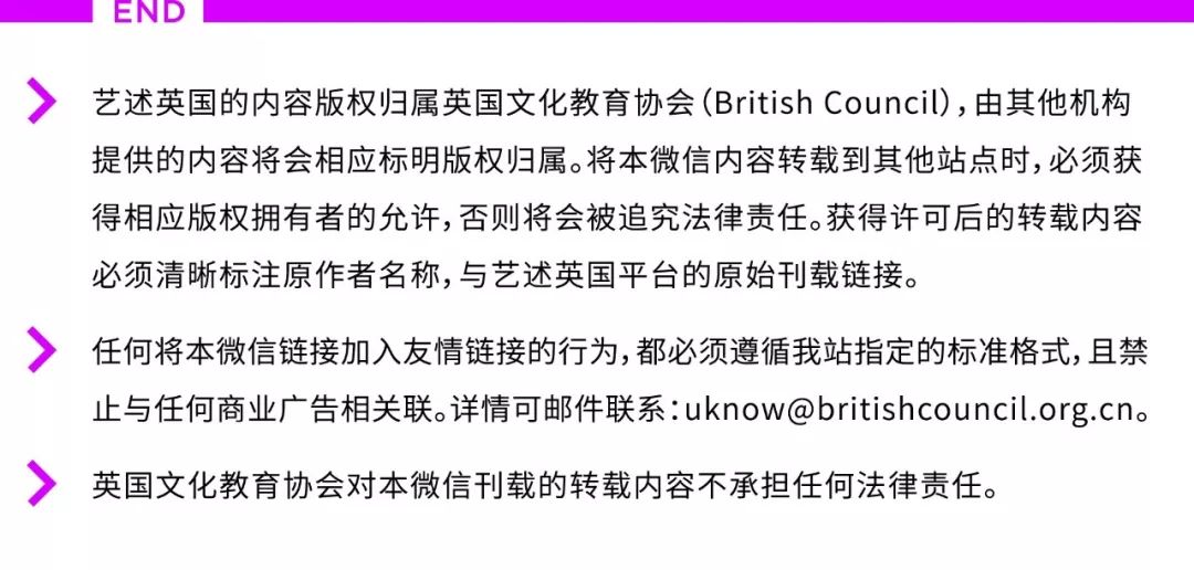 此次展演由英国文化教育协会主办,英国国际贸易部和成都市人民政府外事办公室为战略合作伙伴,感谢英国旅游局、苏格兰旅游局及华人视觉艺术节的倾情支持。更多内容请访问https://www.britishcouncil.cn/ccu/ConnectedByCreativity