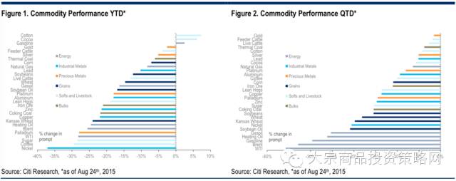 花旗指出,BCOM和GSCI这类主要大宗商品指标都处于或接近2003-2008年超级周期之前的水平,大部分大宗商品的损失来自第三季度第一个月,也就是7月。
