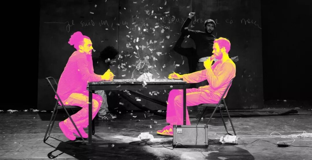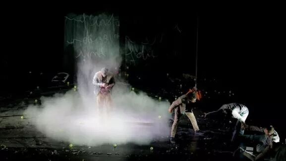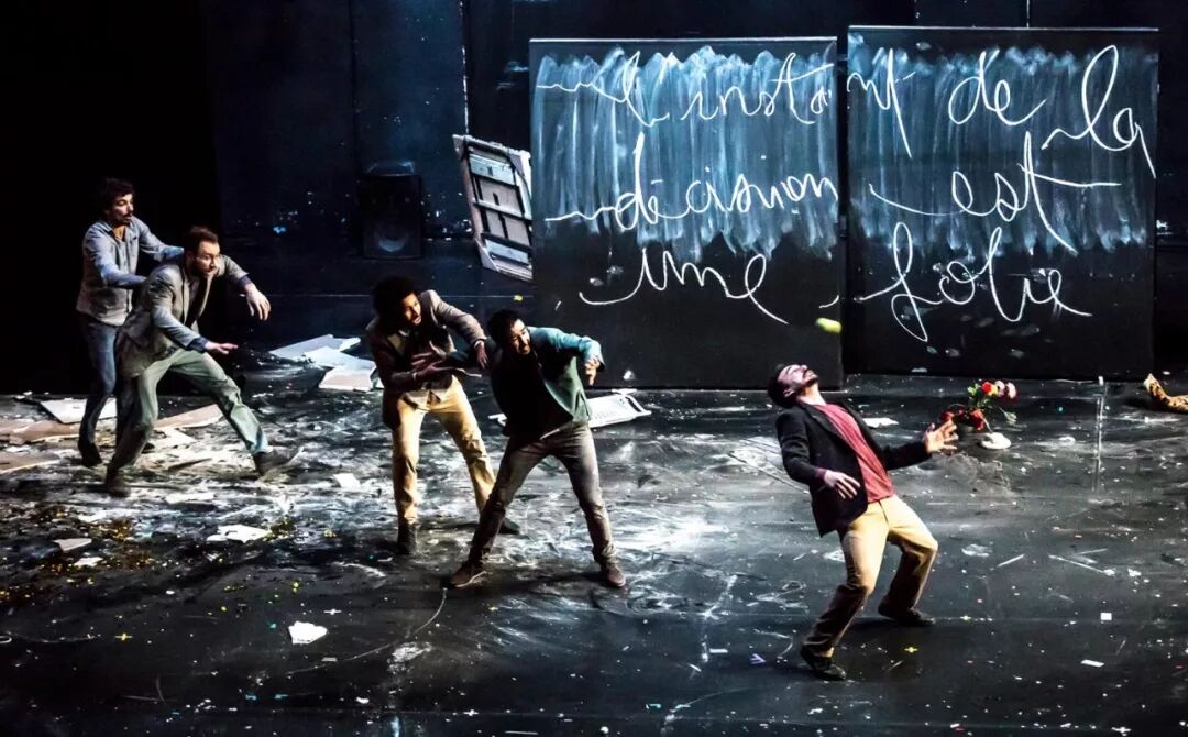 他们将舞台变成了一个巨大的游乐场,在这个充满威胁的比喻世界中,失败和失去控制就是它的规则——五个杂技演员在充满敌意的恶劣环境中生存。不稳定的地面从他们的脚下消失,墙壁在晃动,天花板也几乎塌陷在他们身上,陷入躲闪、越过、失去平衡的不确定的境地。