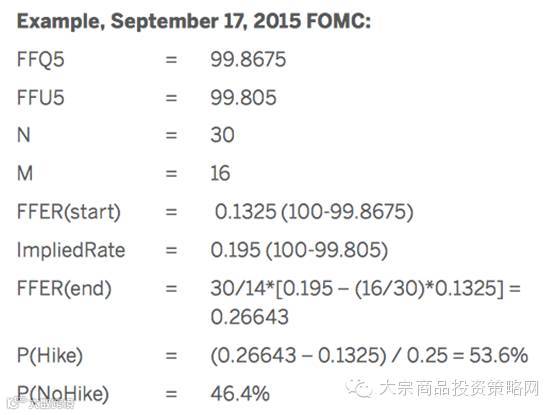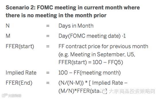 需要注意的是,FF代表芝商所30日联邦基金利率期货合约;FFER(end of month)和FFER(start of month)代表包含市场预期在内的联邦基金有效利率(Federal Funds Effective Rate)每日平均值,代入公式时是采用利率形式。