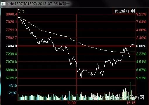 主要标的为大盘蓝筹的沪深300(主力合约:IF1507)、上证50(IH1507)与沪指走势类似,IH表现更抢眼,但代表了中小盘股的未来走势的中证500(IC1507)却走出了开盘接近涨停,盘中一度接近跌停,收盘勉强收红的惊险走势。