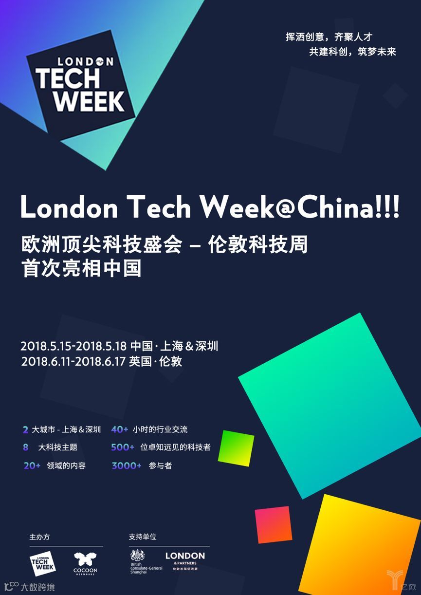 2018年5月15日至18日,在伦敦发展促进署、Informa - Knect365及Tech London Advocates的鼎力支持下,2018伦敦科技周首次将年度盛事延伸至中国,由Cocoon Networks承办,将伦敦乃至欧洲的顶尖前沿科技创新呈现给中国观众。