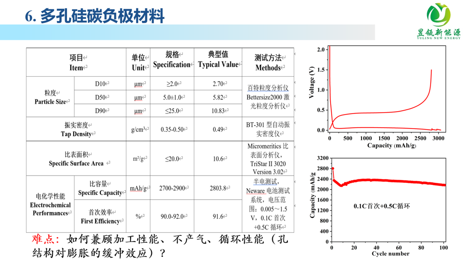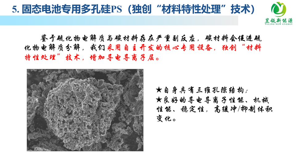 针对固态电池,通过技术、工艺和设备创新,特别是独创“材料特性处理”技术,增加了多孔硅和多孔硅碳的导电导离子层,比容量可以做到2700~2900mAh/g左右,自身具有三维孔隙结构,具有良好的导电导离子性能、机械性能、稳定性,高缓冲/抑制体积变化,解决了固态电池新适配负极的难题。多孔硅碳用途:动力、高端数码、固态电池等市场。