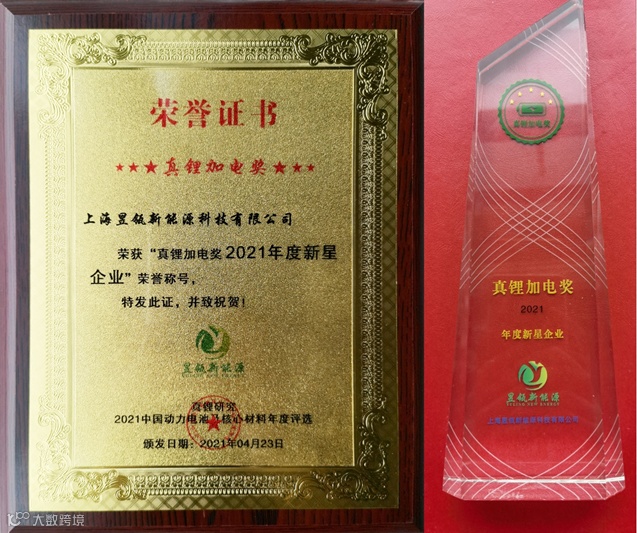 2021年4月23-24日,上海昱瓴新能源科技有限公司(以下简称昱瓴)出席了“新能源电池材料前沿技术与智能制造高峰论坛”,并同期参加了2021年中国动力电池及核心材料年度评选,是唯一荣获“真锂加电奖——年度新星企业”称号的公司。