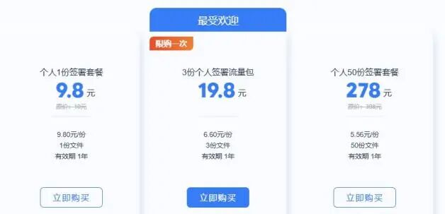 法大大有两种收费方式,一种是按照功能版本来收费,还有一种是按照签署套餐来进行收费的,具体如下: