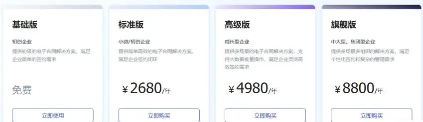 标准版:0/年,满足合同签署基本需求,适用于小型初创公司使用。