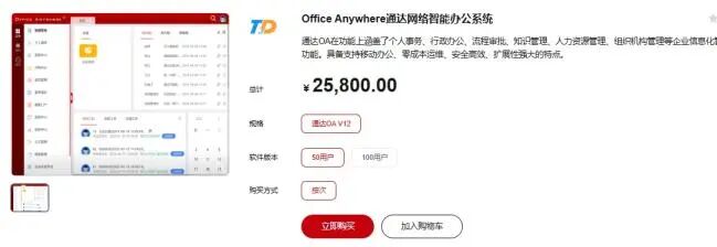 价格:通达OA根据不同的用户数量来进行收费,比如通达网络智能办公系统50用户价格是25,800元/个,100用户价格是39,800.00元/个,如需要购买通达OA可咨询我们的选型顾问。