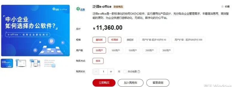 价格:泛微有多个产品,不同的产品价格不一样,比如泛微e-cology基础版50用户价格是175,200元,泛微e-office基础版50用户价格是11,360元。
