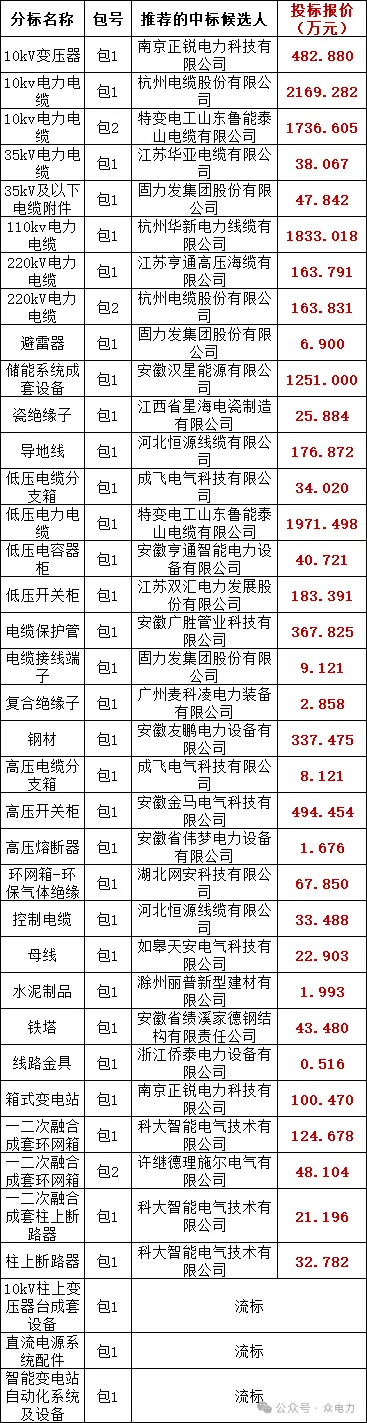 国网安徽电力2025年原集体企业第八次物资公开招标采购(一)评标工作已经结束,依据《中华人民共和国招标投标法实施条例》、《招标公告和公示信息发布管理办法》对中标候选人公示的规定,现将评标委员会推荐的中标候选人予以公示,公示期3日。