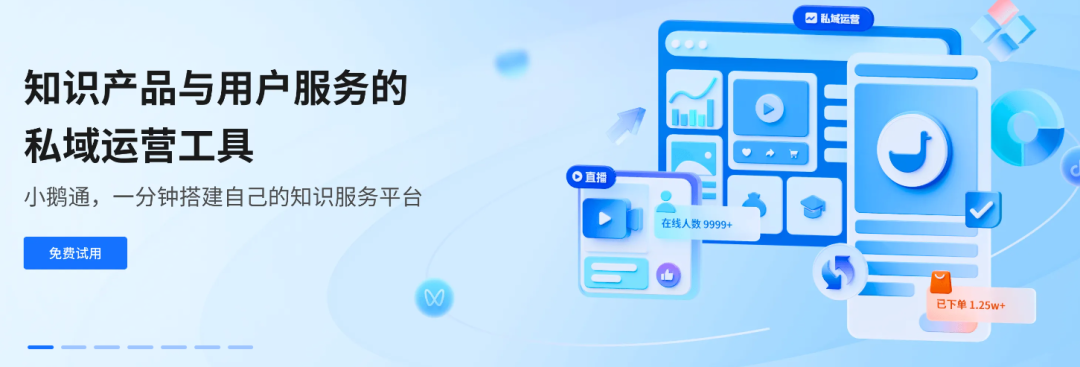 小鹅通知识付费系统,为自媒体知识创业者提供更稳定超清的SaaS在线教育直播系统,支持图文、音频、视频录播、超级会员、训练营等众多功能痛点,多终端无延迟观看让学员学习更方便,老师授课更轻松。小鹅通助学工具包含打卡、考试、练习、作业本、题库、证书、表单、活动管理、随堂检测、测试互动、付费问答等数十种营销玩法帮助内容变现。