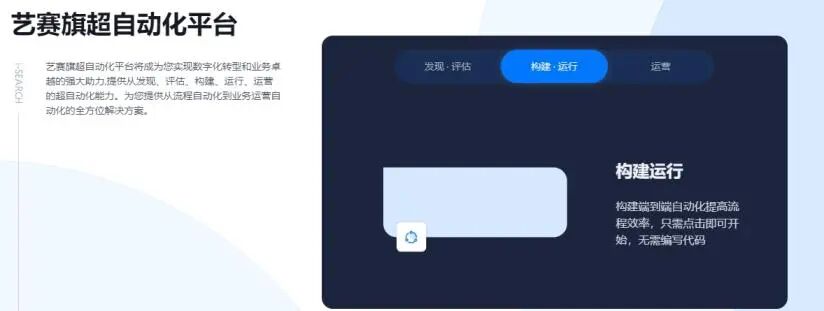 艺赛旗超自动化平台将成为您实现数字化转型和业务卓越的强大助力,提供从发现、评估、构建、运行、运营的超自动化能力。为您提供从流程自动化到业务运营自动化的全方位解决方案。