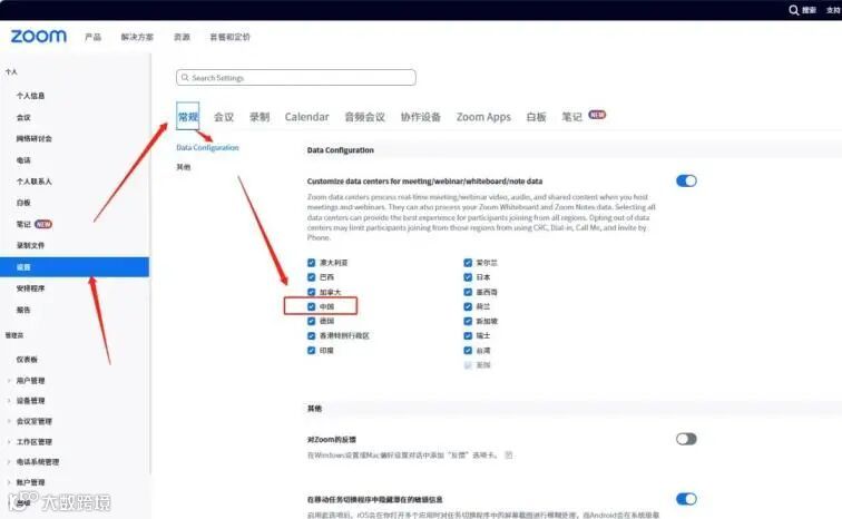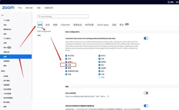 1.发起者升级账号,使用带中国数据中心的账号(目前只有企业版可以申请开启中国数据中心)(如下图所示)