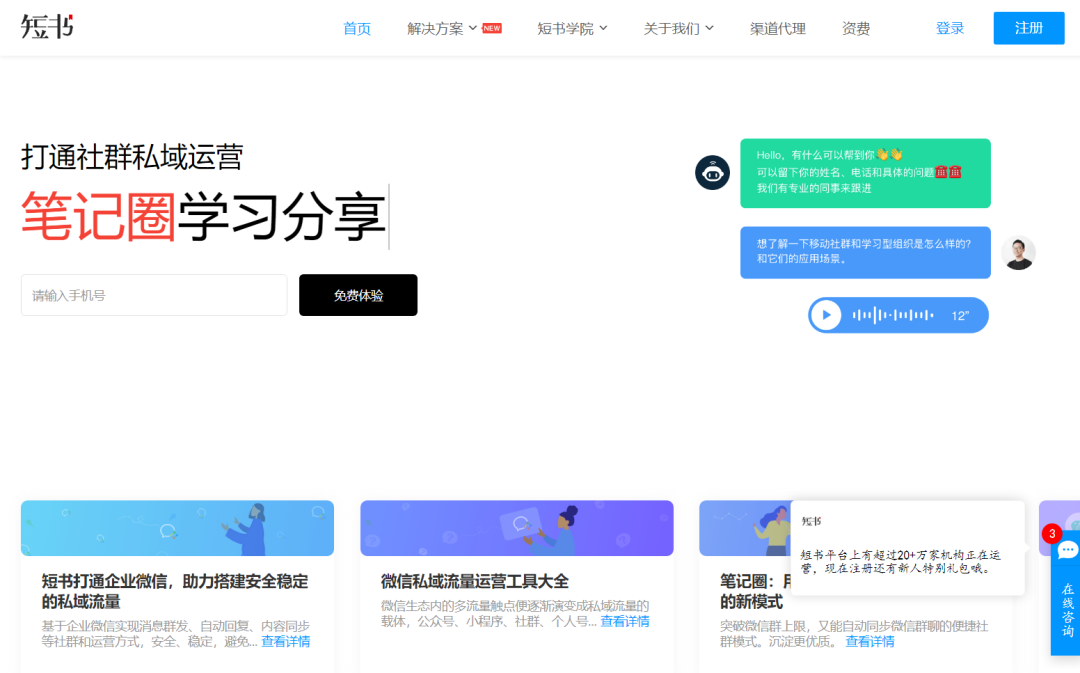 短书是一款集成知识付费、社群运营和直播功能的综合平台。它支持多种内容形式,包括图文、音频、视频以及训练营模式,为用户提供丰富的学习体验。此外,短书与有赞支付和腾讯云等系统集成,使支付和流媒体服务更加安全便捷。适合需要在多个渠道同时推广知识产品的中小型企业。