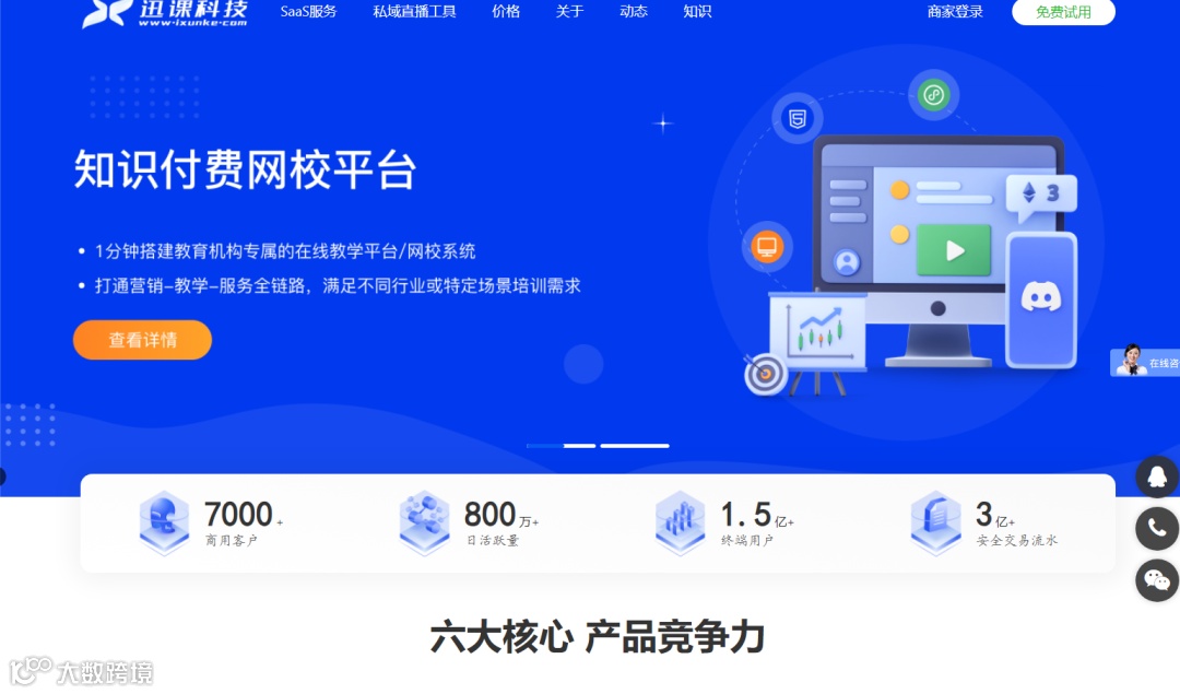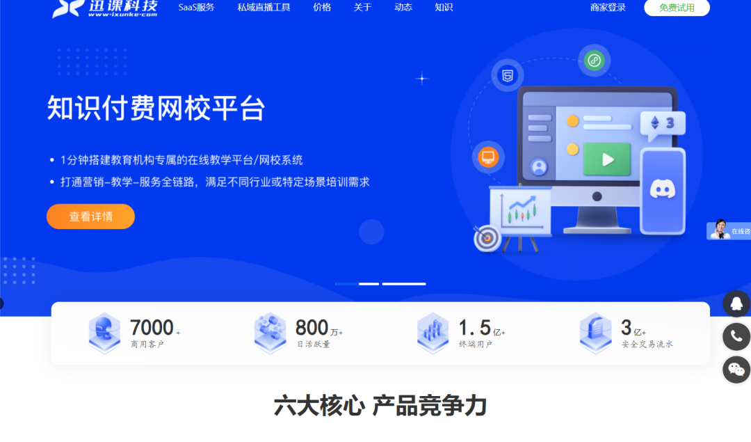 迅课科技提供在线教育网校系统搭建开发,支持快速上架到自己的知识店铺,实现内容产品变现。迅课的优势在于其内容体系,提供多种内容“组合打包”形式,可以将课程、题库、资料包等内容组合成“班级”或会员专属权益,快速帮助商家建立体系化的内容产品。