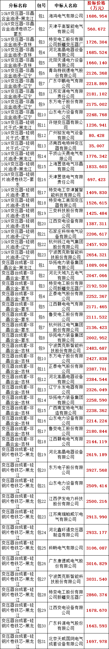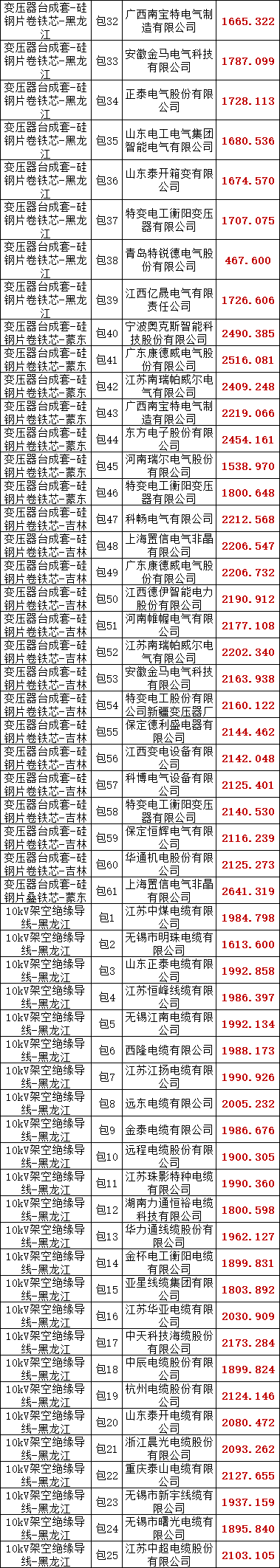 国家电网有限公司2025年东北区域第二次联合采购架空绝缘导线、10kV 变压器、10kV 柱上变压器台成套设备协议库存招标采购项目评标工作已经结束,经评标委员会评审,现将中标结果公告如下: