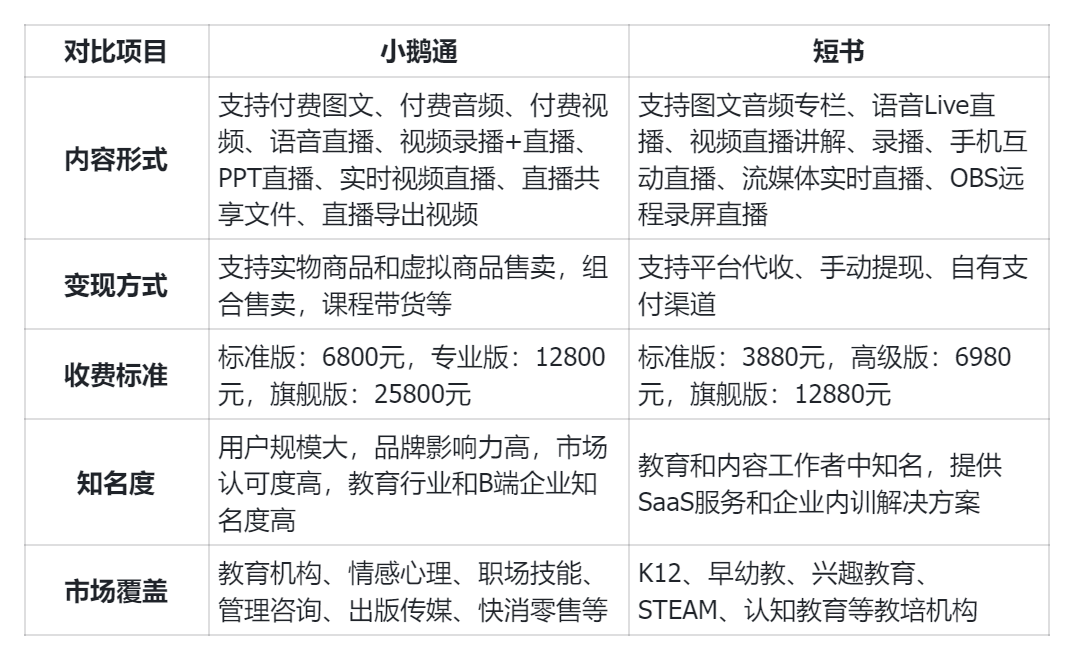 问:小鹅通和短书对比!该如何选择?