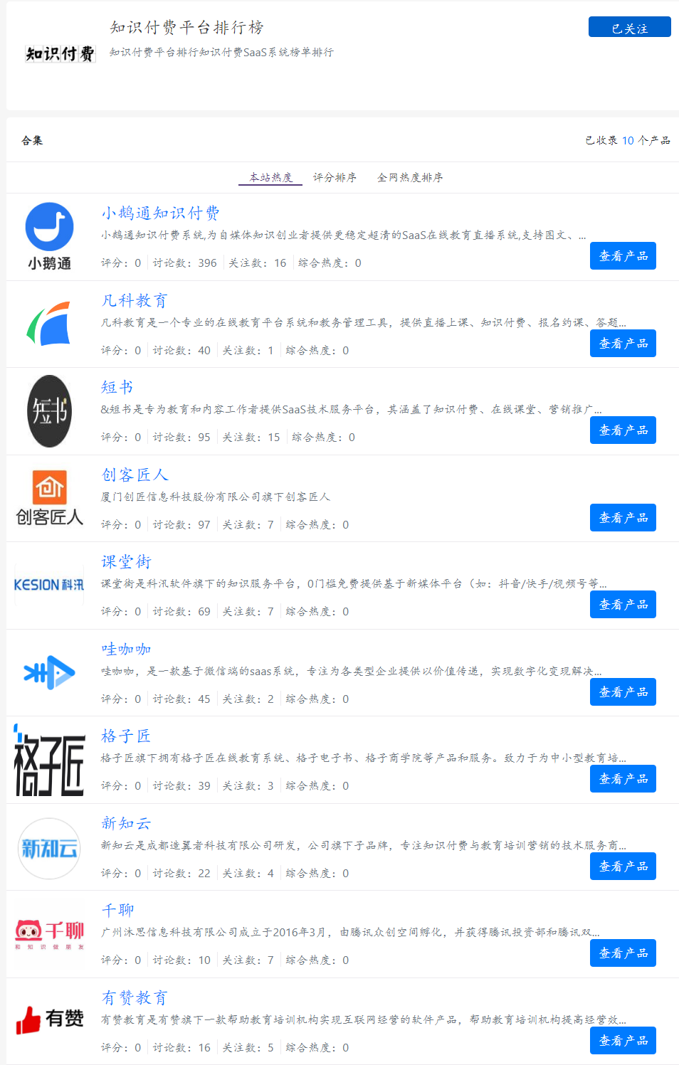 知识付费类的有小鹅通、凡科教育、创客匠人、有赞教育等。