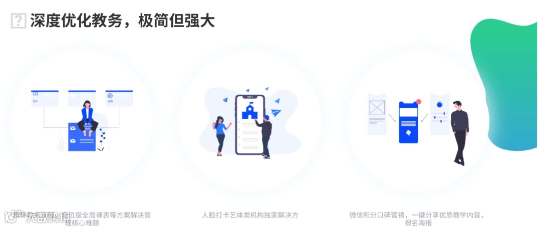 叮叮开课是一套线上线下数字化教育变现工具,包含营销招生、教务管理、数据统计分析、版权保护、品牌网校以及直播教学系统,覆盖教育行业各个环节,为教育机构提供解决方案,从传统复杂繁琐的流程,升级到闭环,为教育赋能。