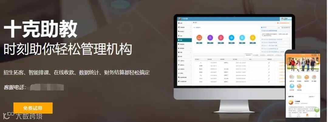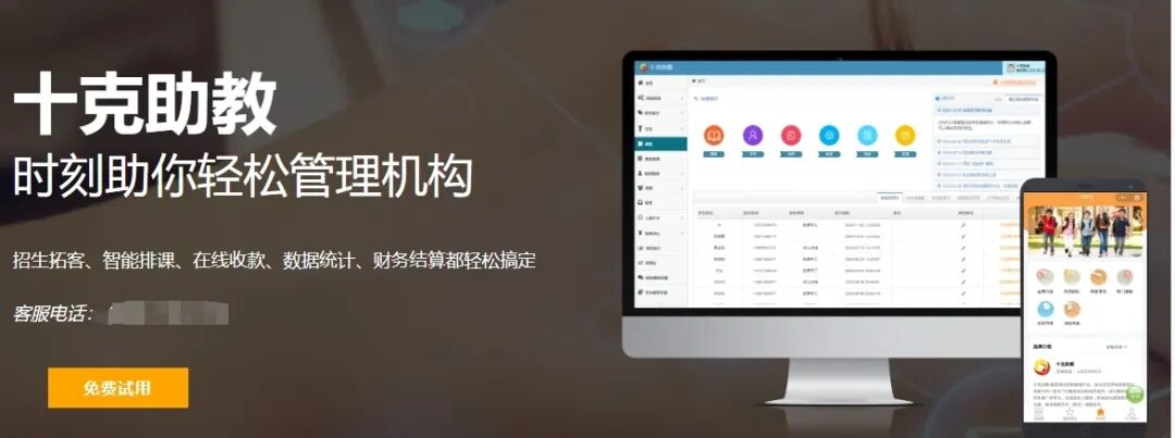 十克助教-教育培训机构管理平台,一款专门为教育培训机构开发的,进行教务管理和对外推广的平台,包括招生小程序,机构后台管理系统,校长端、教师端和家长端服务号。涵盖了机构管理所需的全部功能。并在家校互联,对外推广方面进行了功能延伸, 可以有效帮助机构在招收学员方面提高效率。