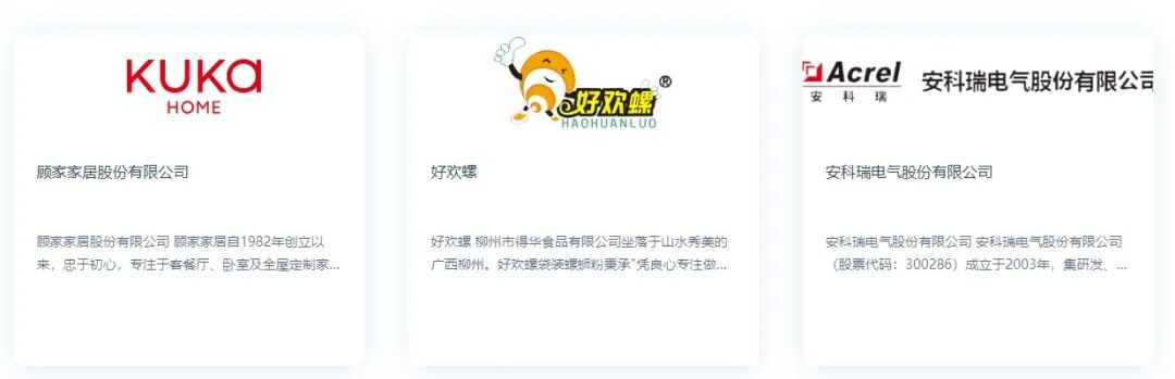 星谷云多年来,不断积极拓展业务领域,与多个行业的客户建立了紧密而深入的合作关系,相关客户覆盖多个行业,如顾家家居、好欢螺、安科瑞电气、诺贝尔瓷砖、慕思健康睡眠、YATO等客户。