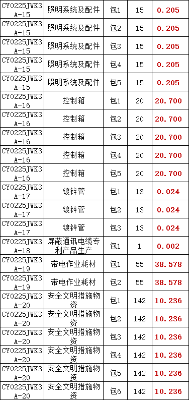 2025年第三次物资电商化框架(新增)公开招标采购项目