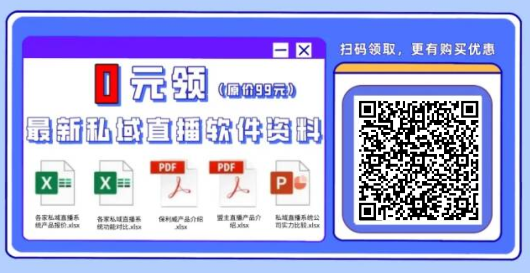如果需要采购私域直播系统,可以通过我们企服商城购买,这边是软件超市,代理合作了微赞、保利威、上直播、诺云等多款直播软件,我们会有专业选型顾问帮您介绍推荐匹配的产品/版本,还有专属优惠福利可以领取。扫码免费领取软件资料和详细报价~