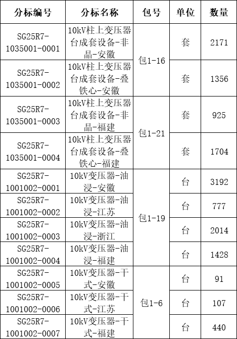 2025年华东区域10kV柱上变压器台成套设备、10kV变压器、架空绝缘导线协议库存第二次联合采购