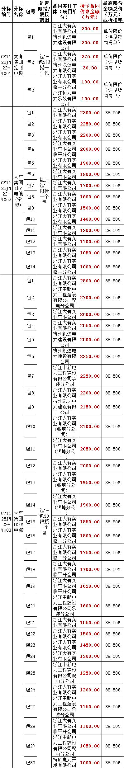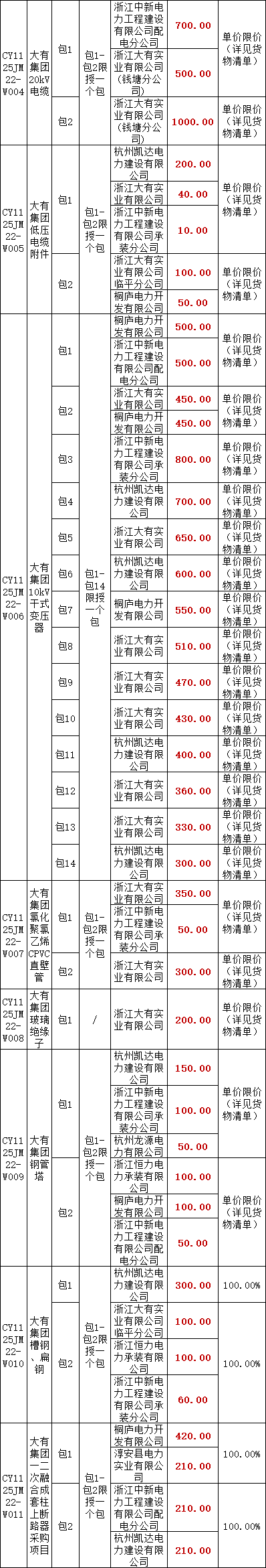 2025年市场化项目第十一次物资框架公开招标采购(台州)
