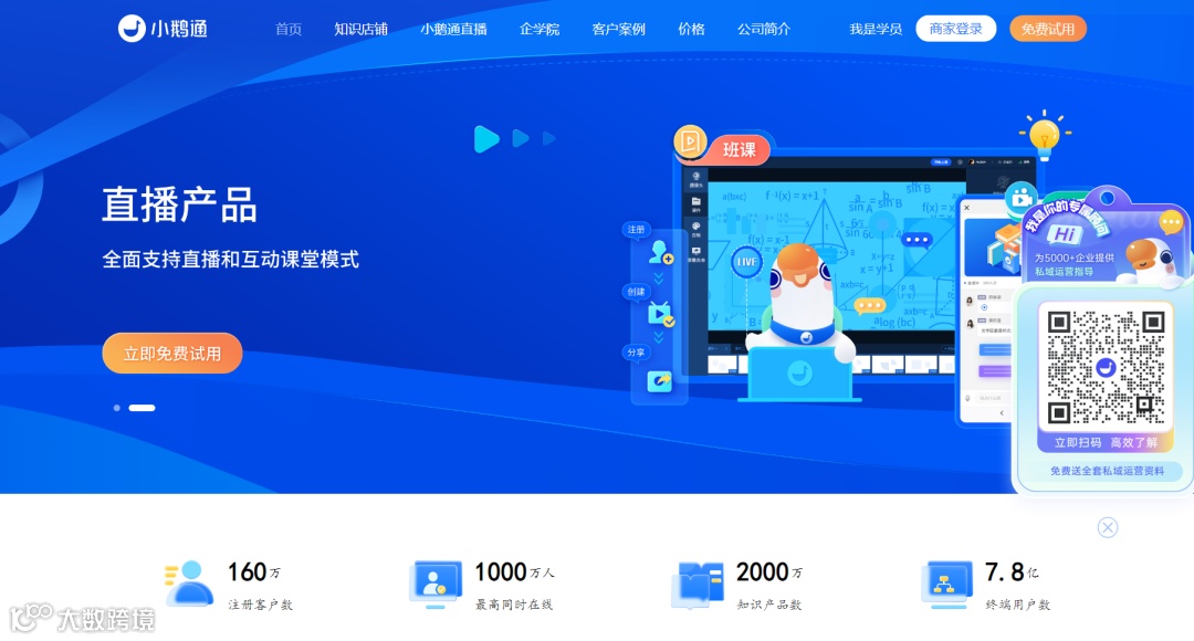 小鹅通针对教育类直播授课有非常实用、好用的功能,如打卡、考试、作业本等辅助工具,并具备数据分析功能,可实时了解学员听课和付费情况。小鹅通还提供流量补贴政策,让老师在直播中降低成本。