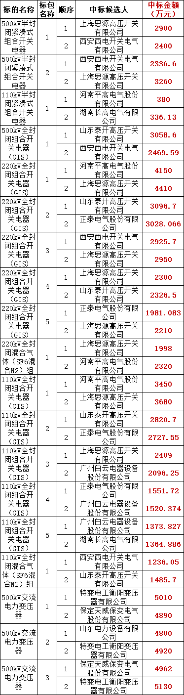 南方电网公司2025年主网一次设备第三批批次招标项目(招标编号:CG2700022002114767),经评标委员会评审,现将中标候选人公示如下: