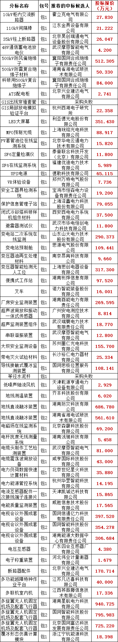 国网湖南电力2025年第四次物资公开招标采购项目评标工作已经结束,依据《中华人民共和国招标投标法实施条例》、《招标公告和公示信息发布管理办法》对中标候选人公示的规定,现将评标委员会推荐的中标候选人予以公示,公示期 3 日。投标人或者其他利害关系人若对评标结果有异议的,请在中标候选人公示期间以书面形式(邮件)提出。