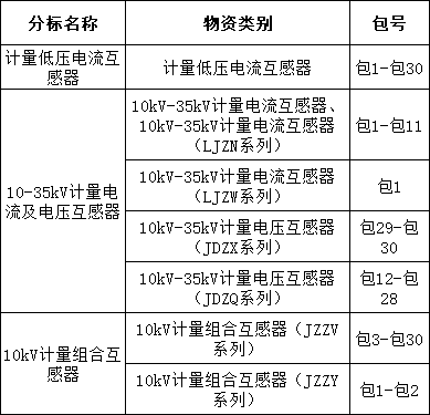下表为本次招标范围内适用资格预审的包号及物资类别。