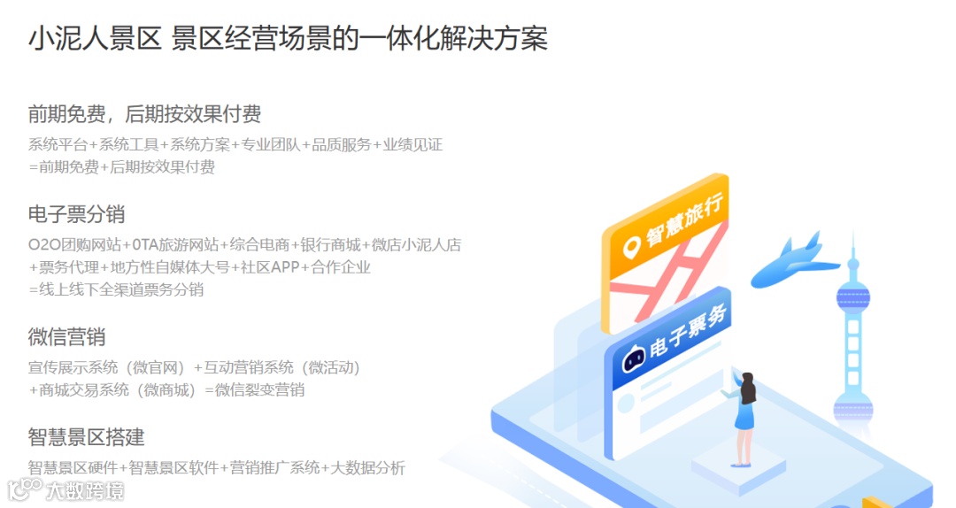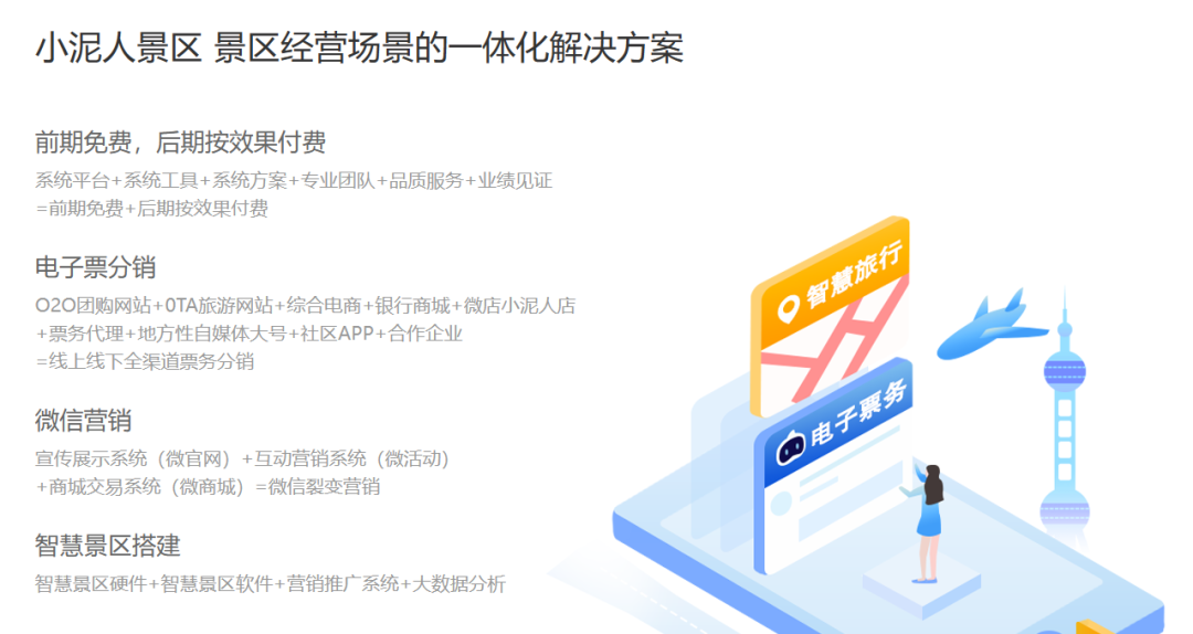 2)小泥人SaaS系统:小泥人系统提供了丰富的旅游SaaS解决方案,包括景区票务多业态SaaS系统、游乐园SaaS系统等。该系统能够一站式解决旅游企业的资源采购、产品分销等需求,帮助旅游企业实现信息化和智能化管理。