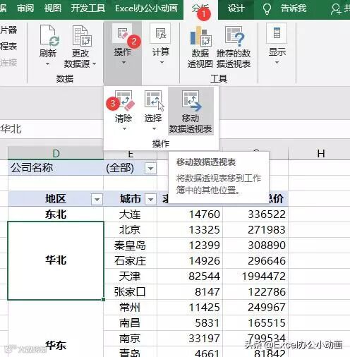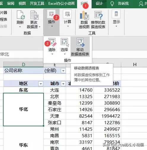 选择、移动、复制、删除:有时候觉得透视表字段较多并不是我们想要得到的效果,在分析中选择全部字段清除后再次重新布局!
