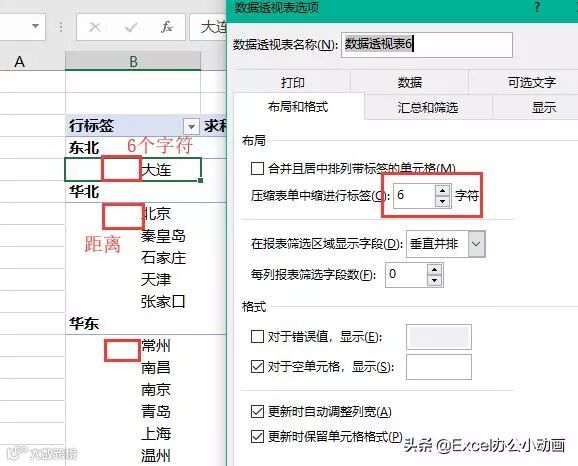 在分析下选择是否显示+/-按钮,列表字段以及标题,设置透视表选项: