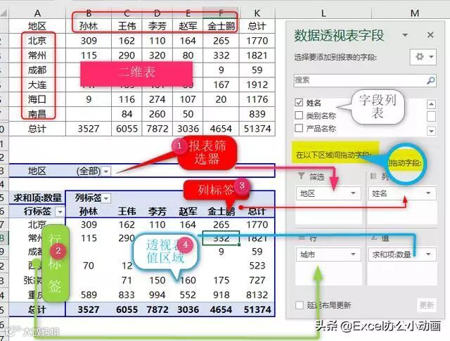 很多朋友在学习数据透视表可能会搞不懂字段/标签、值区域、筛选页……等等这些乱七八糟的名词之间的关系。But没有关系,下面我们来看一个excel表中的二维表,相信很多朋友制作这样的报表,在数据透视表的经典布局就将透视表各个区域显示得十分清楚,并且和我们的二维表十分相似。