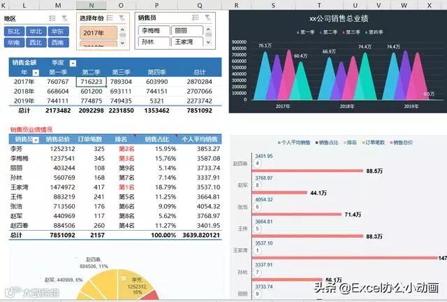 功能是什么?在excel中的高级筛选器,通过使用多个切片器设置报表链接达到多级联动,比如想要查看任意地区销售员的销售额