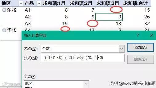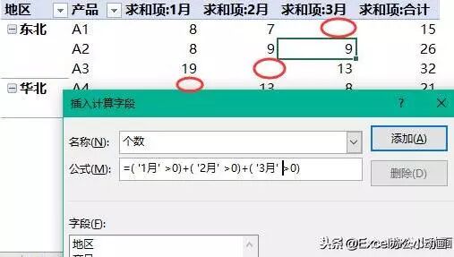 那么我们就要判断东北地区有多少笔销售额,大于0的才可以统计为1次!其实这里的公式就是相当于if函数,透视表中也是支持函数计算的,相比于普通的表格中函数参数不能是单元格,区域,定义名称!