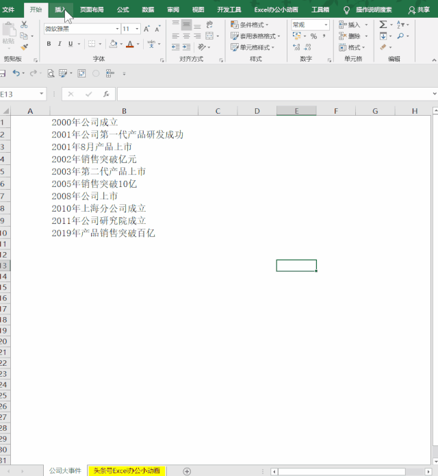 有的时候在工作汇报中需要阐述公司大事件,不能直接生硬的说明发生了什么事件,今天小编分享一个快速制作公司大事件的时间轴,超级简单