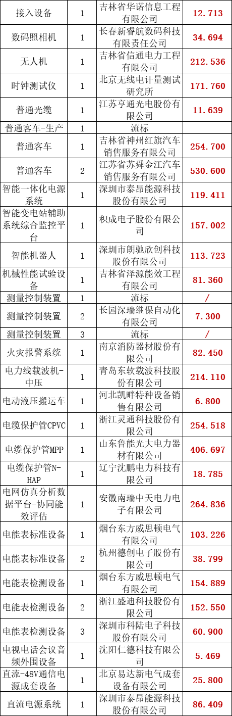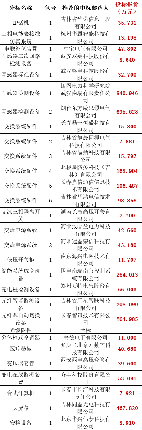 国网吉林省电力有限公司2025年新增第二次物资公开招标采购评标工作已经结束,依据《中华人民共和国招标投标法实施条例》、《招标公告和公示信息发布管理办法》对中标候选人公示的规定,现将评标委员会推荐的中标候选人予以公示,公示期3日。投标人或者其他利害关系人若对评标结果有异议的,请在中标候选人公示期间以电子邮件形式提出。